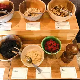 including pickled mustard greens, wood ear mushrooms, seaweed, pine nuts,
