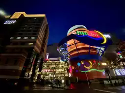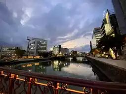 One stop from Hakata Station to Kushida Shrine-mae Station, then a 3-minute walk to the trendy "Hakata Canal City CANAL CITY HAKATA" shopping mall, which is filled with more than 120 shops, restaurants, cafes, ramen arenas, playgrounds, cinemas, and a canal in the center of the mall.