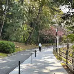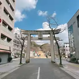 This is the entrance to the shrine side of Nishi Park, one of the '100 Cherry Blossom Spots'. You can either come down from above or look at Nishi Park from below.