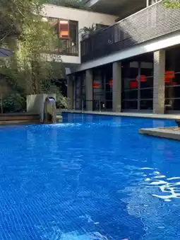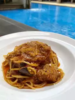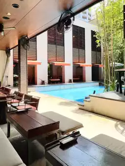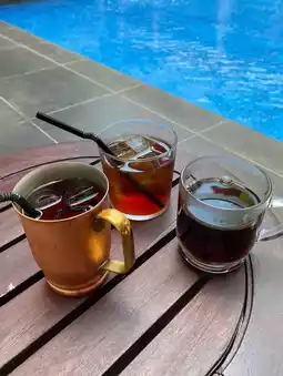 There was a seat right by the pool for two people, but we suddenly added one more person and it became three, so we got a semi-private room❤