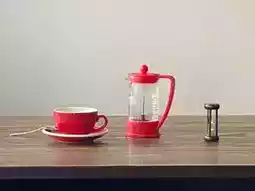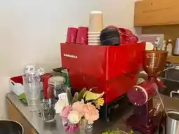 This is my first time at this shop, and it has a red espresso machine and a red sign♥️