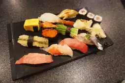 Hungry intestines wheel rolls, reasonable and unreasonable to come pile of sushi.