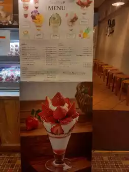 For the other cup, we originally wanted a strawberry parfait, but since the mixed cup already had strawberries, after some discussion, we decided to go for a melon parfait instead. No need to mention how delicious the ice cream was, and the melon from Shizuoka was truly sweet to the core, absolutely unbeatable.