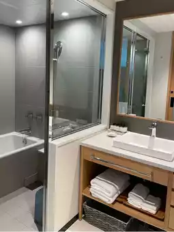 It doesn't matter if you have suitcases, you don't need to take a taxi, so the hotel is in a super convenient place. I came with my friends this time, so I booked a room with two beds. The bathing area is separate from the restroom, so you can go to the restroom at any time even if someone is taking a bath. 😍