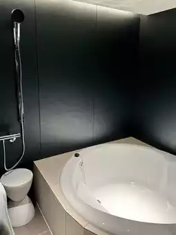 There is a stool in the shower room! ! There is also a bathtub. I can finally take a bath while sitting down. 🤩Free my legs