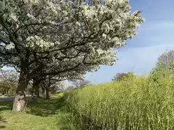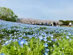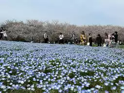 The park is very large, and the most popular attraction must be this sea of blue flowers "Pink Disc Flowers" 💙 These flowers are on the slope, and you can take pictures from the bottom of the slope to capture the beautiful scenery of the blue flowers in front of the cherry blossoms behind 🌸 Not bringing a camera that day was the most regrettable decision, because the person taking the photo needs to be separated from the protagonist by a sea of flowers 📸 Although you can also use a mobile phone to achieve the effect of Zoom/portrait, I believe it is very different 🥹