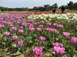 In addition to this sea of flowers, there are tulips, red and pink flowers throughout the park. There are also lakes, bike trails, a zoo, food trucks, etc. in the park. It is definitely a place where you can spend a whole day!