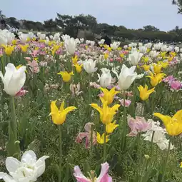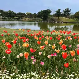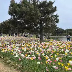 Enjoy the spring flowers at Umi-no-Nakamichi Seaside Park, perfect for a fun day of foot fun for the whole family!