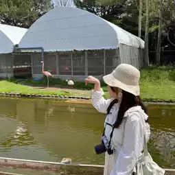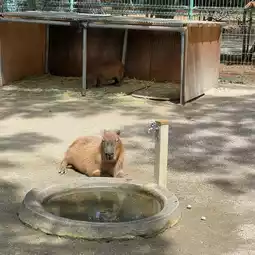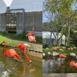 It has a zoo area with red cranes, capybaras, birds, pigs and many other different animals to see.
