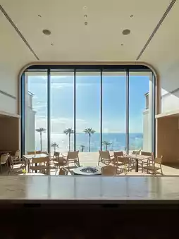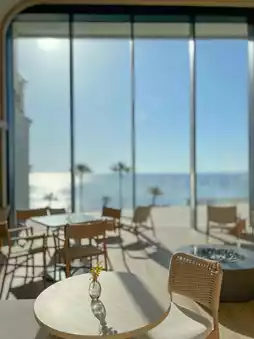 A spectacular hotel with terrace seats where you can enjoy the ocean view and a stylish interior 🤍