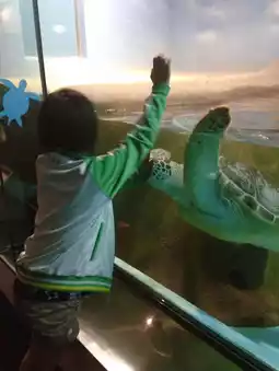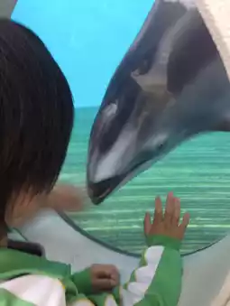 The dolphins and sea turtles came up to the children and they were very happy🥰