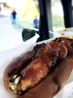 The Kinjirushi Dog at the Kinjirushi Dog Outboard Restaurant Yasuragimaru, which is a 10-minute drive from Umi-no-Nakamichi, is famous🚢It's very delicious and very popular🌭