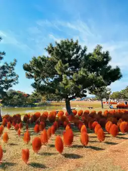 About a 40-minute drive from Hakata Station, there are different flowers to photograph all year round, and in November you can take photos of flowers and ginkgo all at once, including roses, cosmos, broom grass and ginkgo leaves. Among them, the cosmos is the most surprising, with a large field of flowers as if you are in Monet's garden, which is a different kind of autumn romance.