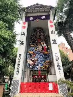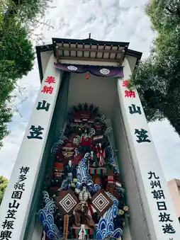 The most famous thing about Kushida Shrine is that it has a giant Yamakasa. This spectacular and gorgeous portable shrine is left in the shrine for people to admire after the festival. If you look closely at every detail of the Yamakasa carvings, you will find they are so delicate that you will feel incredibly beautiful. The Kushida Ginkgo tree at the entrance is a designated natural monument of Fukuoka Prefecture. It is said to be over 1,000 years old and is revered as a sacred tree!