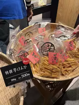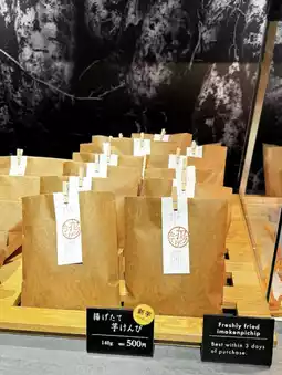 There are also sweet potato-made dessert pastries and some bagged snacks