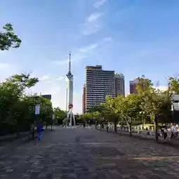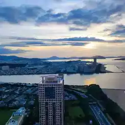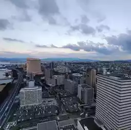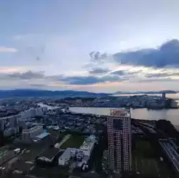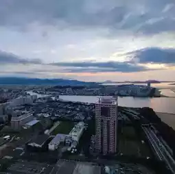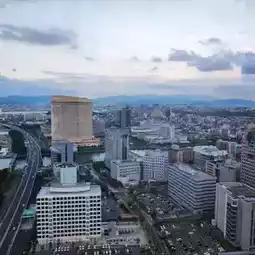 The atmosphere before sunset, during sunset, the golden sky is very beautiful, and in the evening at night, you will see the city lights and the atmosphere of Fukuoka city.
