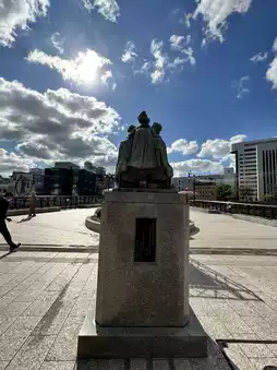 In front of the bridge is the "Three Maiko Bronze Statue"