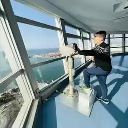 In the afternoon, I took a 10-minute bus ride to #HakataPortTower🗼. As the saying goes, "If you want to see a thousand miles away, you must climb to a higher level." You can overlook the scenery of Hakata Port by climbing the tower.