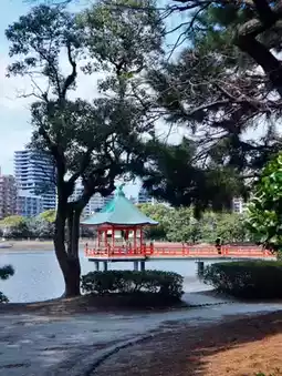This park is a rare waterscape park in Japan. After strolling around, it really felt like a condensed version of West Lake. A path connected by four bridges and islands runs through the lake, dotted with exquisite pavilions and green umbrellas, creating a natural and peaceful scene.