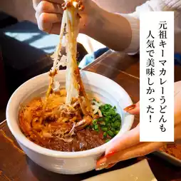 You can also eat the original keema curry udon by mixing it, adding tempura flakes, and adding dashi, changing the flavor🥢