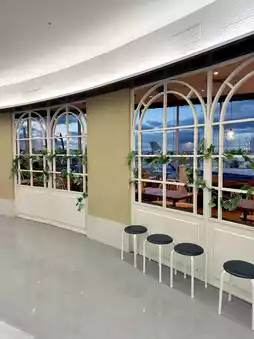 This cafe is located on the 3rd floor of the domestic passenger terminal building at Fukuoka International Airport.