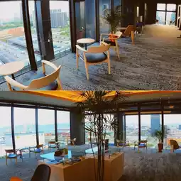 Check in at the lobby on the 11th floor, with floor-to-ceiling windows and a great view.