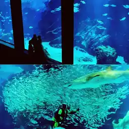 The large glass aquarium houses many sharks, has feeding shows, and dolphin performances. You can watch dolphins and sea lions up close, which is amazing! There are three dolphin shows.