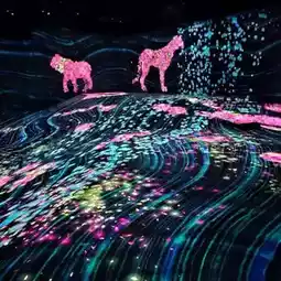 The theme of TeamLab in Fukuoka revolves around the forest. Upon entering, visitors can interact with the animals in the forest through the official app. It's fascinating to observe the virtual forest animals ❤️. Additionally, there are some small facilities that allow both adults and children to engage in activities ✨️. Each TeamLab location has its unique features, so don't miss out!