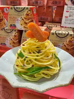 The whole mentaiko on top of the pasta is a visual work of art! 👍 You can enjoy it at home with the mentaiko pasta sauce that you can buy right at the store.