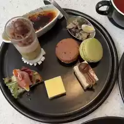 Pierre Hermé's two most popular macarons, pistachio macarons, cheesecake made with ganache chocolate and yuzu, and cold vegetable salad galette were also served