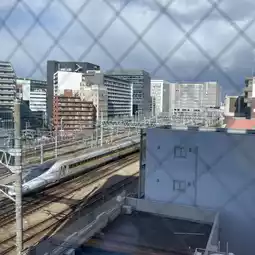 The view from the room window overlooks the JR tracks, which is really great.