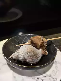 Hokkaido is known for its abundance of shellfish, making whelk a common ingredient. The whelk meat, simply seasoned with rose rock salt by the chef, brings out its refreshing and sweet flavor.