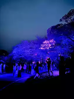 In the darkness, Fukuoka Castle transforms into a mysterious fortress, both dark and enchanting. The colorful lights create a dreamy atmosphere, illuminating the ancient walls with a kaleidoscope of colors, making you feel as if you are in a dream. The changing lights make the castle's outline sometimes clear, sometimes blurry, like a captivating painting that makes you stop and admire.