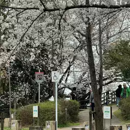 It is within walking distance from other places. The cherry trees along the river in the park are in full bloom, which is perfect for taking beautiful photos. After taking photos, you can go shopping in Tenjin shopping district directly🛍️