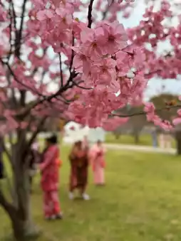 When I walked into Maizuru Park, I was instantly amazed by the scene before me. The pink and white cherry blossoms are in full bloom, forming clusters of flowers that look like a grand pink snow curtain. My friend and I thought we could walk the distance in 10 minutes, but we couldn't even walk.