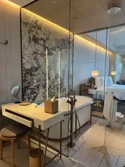 Two rooms were booked, a Premier Suite and a Bay View Twin Room. The suite covers an area of nearly 90 square meters, with a whole floor of floor-to-ceiling glass facing the bay🌊. When the weather is good, the view is so beautiful that you can't wait to pull the curtains😍. The layout of the room is quite special, the entrance is a promenade, the left hand side is the guest toilet, after turning right into the room, the left hand side is the cloakroom leading to the bathroom, then beyond is the screen separated bedroom plus office desk, the innermost is the living room. This design gives all areas of the room an unobstructed view of the bay🌅. I quite like the layout of the twin rooms, all functional areas are independent and sophisticated, the stay feels more spacious than the Tokyo Otemachi Four Seasons and Addison, however in practice instead the Fukuoka Ritz is the smallest. The hotel bedding is particularly comfortable, the mattress is moderately soft and hard, and the sheets and quilts are super smooth to the touch🛏️. But the only dissatisfaction is that the bathroom lighting is too dim, at night in the mirror can not see clearly, and the shower water pressure is small, bathing is a bit not cool enough😩.