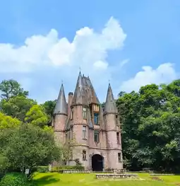 It is small, so if you look around, you can see that it is surrounded by buildings.