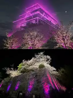 Now only the ruins are left and you can’t go inside to visit, so you can only enjoy the cherry blossoms nearby. If you want to visit the complete castle in Fukuoka, you can go to Kokura Castle. The seal is at the entrance of Korokan, so you can visit and get your seal stamped. Or you can wait until the city walls are lit up to watch the night cherry blossoms, which is also the highlight of a spring outing.