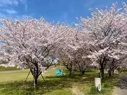Minato 100 Nen Park, located in Higashi Ward, Fukuoka City, near the Namazuka Coast, is a hidden gem for cherry blossom viewing. It offers a unique combination of lush greenery, the blue ocean, docked ships, and planes taking off and landing, making it a lesser-known spot even among locals.