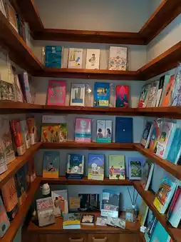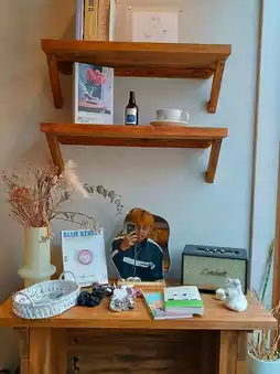 The book sales corner by the window is filled with colorful Korean books, and that corner is a popular check-in spot! ๐๐