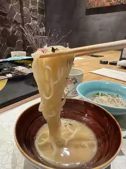The finishing dish, Inaniwa udon, is cooked in the broth and soup infused with the meat's rich flavor…