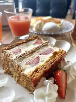 The fluffy pancakes are the best, but in strawberry season you'll want to eat Napoleon pie🍓