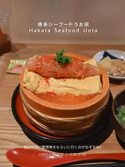 Highly recommend "Hakata Seafood Uota." Also, the bittersweet pudding at the newly opened "sym coffee roasters" cafe was exceptional.