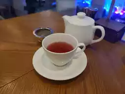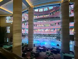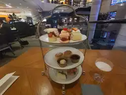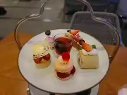For drinks, after the welcome drink, you can enjoy unlimited refills. I order the seasonal strawberry tea and Darjeeling tea. The space is spacious, and the lounge opens up to the fountain, providing a sense of openness. Thank you.