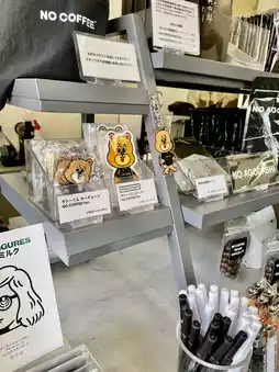 • Check out the goods: coffee cups, tote bags, and stickers make great travel souvenirs.