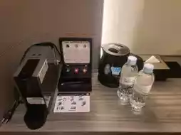 The room comes equipped with three types of Nespresso capsules and two bottles of water. The bedding is excellent, and the bathroom is well-designed, featuring a separate bathtub and shower room. The toilet and sink area are also spacious.