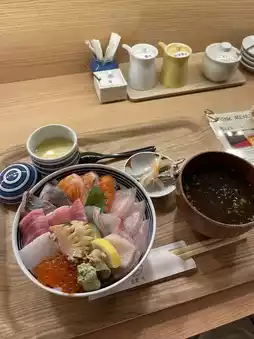 The sashimi in the seafood donburi was incredibly fresh. Each piece was thick and generously sliced. Sweet shrimp, tuna, and salmon were all served in turn. The vinegared rice had just the right sweet and sour taste. I devoured it completely. The grilled salmon had crispy skin and tender meat. Even the accompaniments were thoughtfully prepared. The rice was refillable. It was incredibly satisfying. The overall atmosphere felt homely. The food was even better than many restaurants. The prices were also very reasonable. I'll definitely be back for more!