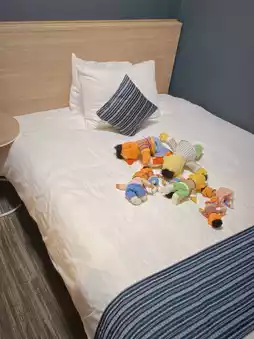 There is only one reason to book this hotel - it is cheap. It is located about 13 minutes walk from Hakata Station. If you are familiar with the first floor of the mall, it is actually quite convenient (if it is raining). This hotel is right next to the train tracks. Others say that it is too noisy to sleep because it is close to the train tracks? In fact, I don’t think it is unbearable, but there are generally some noises, which only last for 3-5 seconds. There is no noise at 12 o'clock in the middle of the night without a train. I think it is acceptable. But the hotel layout is actually just like a hotel, a bit old and not beautiful. Of course, there are no facilities to speak of, and the lobby is not beautiful. The ceiling lights in the hotel room are really scary. It is a large piece of white light, not soft at all, like a mourning hall. I don’t like it and regret that I booked 5 nights in one go without letting me clean up. The room has a large bathtub, and bath salts are provided free of charge in the lobby. The shampoo is very dry, so I bought my favorite one at the supermarket. I asked the lobby to give me an extra pack of green tea bags, but the staff refused. This hotel is very stingy and the waiters are not friendly. I will never recommend it and will never stay again. (In fact, the hotel should invest a little in replacing the ceiling lights to make the room brighter, but this is stingy) All I can say is that this is a nice small hotel but it feels like a run-down guesthouse from the 1970s.