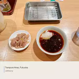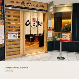 If you are visiting Fukuoka and looking for an authentic tempura experience, we recommend visiting Tempura Hirao Tenjin branch. This restaurant is famous for its freshly fried tempura, served hot one piece at a time right in front of the counter, giving you a crispy outside and soft inside with every bite. The popular set menu starts at around 1,000 yen and includes shrimp, white fish, squid, and seasonal vegetables, served with Japanese rice, miso soup, and the signature “Yuzu Pickled Squid”, a sour and salty dish that helps cut through the richness. The highlight is the freshness of the ingredients and the thin fried batter. The restaurant is simply decorated but charmingly, with a counter style around the frying pan. You can see the chef frying the tempura fresh. The queue is quite long but moves quickly. It is convenient because it is in the ACROS Fukuoka building near Tenjin Central Park. Lunch or dinner is delicious and satisfying at a great price, just like the fame of Tempura Hirao in Fukuoka.