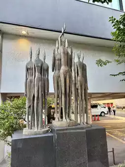 Not far away in Nishinakasu Park stands a bronze statue titled "Rising, Being Born, Walking," created by sculptor Chodo Tominaga. This War Reconstruction Memorial Statue was erected in 1972 to commemorate the citizens who perished during the Fukuoka air raid on June 19, 1945, and the city's journey of recovery. During the raid, B-29 bombers devastated 4 square kilometers of the city, destroying 13,000 homes. After 25 years of reconstruction, Fukuoka was finally rebuilt in February 1972. The statue symbolizes the citizens' resilience, rising from the ashes and moving toward hope and rebirth.
